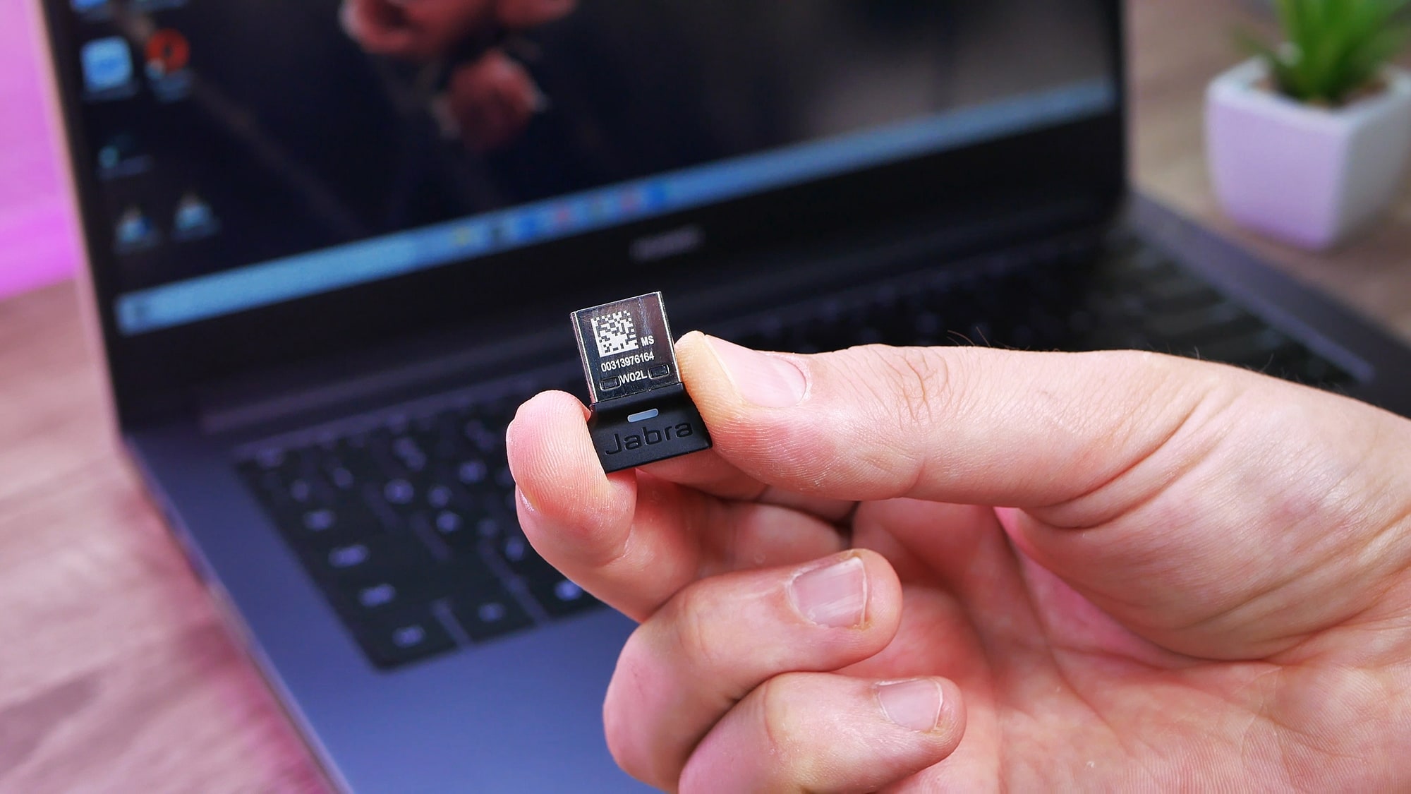 Подключиться к компьютеру можно с помощью крошечного Bluetooth-адаптера Jabra Link 380. Он определится на устройстве, как звуковая плата. Далее нужно включить гарнитуру и соединение будет установлено.