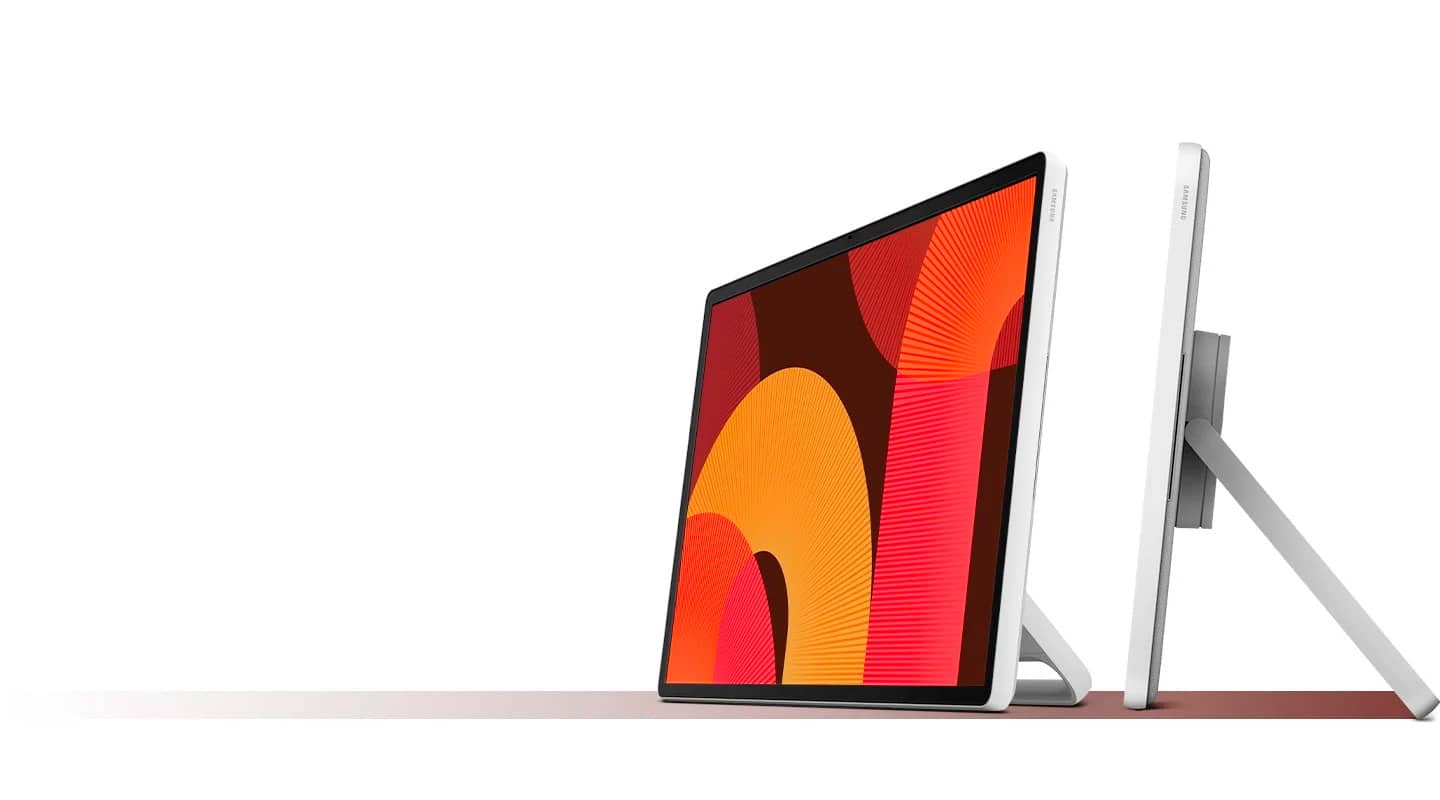 Вес устройства составляет 25.7 кг со стойкой и 5.2 кг без нее. Встроенная батарея обеспечивает до 3 часов автономной работы. Экран можно наклонять в пределах ±35°, поворачивать на ±30°, разворачивать в портретный режим на 90° и регулировать по высоте на 21 см. Встроенная подставка также служит ручкой для переноски.