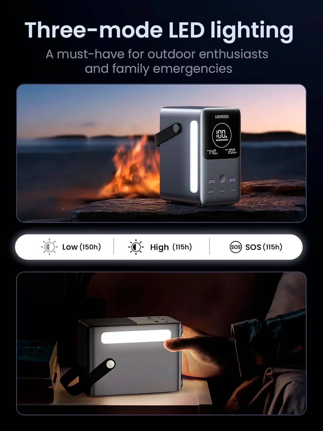 У UGREEN зазначили, що використовуються акумулятори Lifepo4. Вони менше деградують в порівнянні з іншими типами пристроїв. Виробник обіцяє, що після 3000 циклів зарядки ємність буде вищою за 80%, що «на 600% вище, ніж у звичайних батарей».