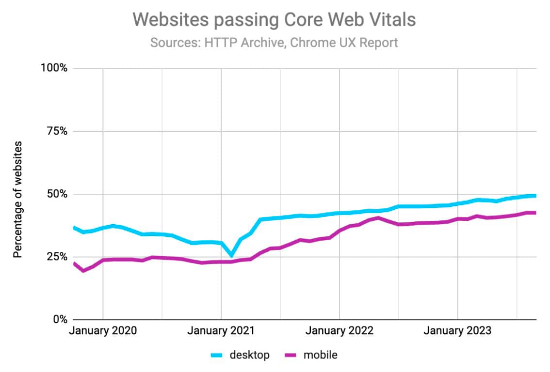 У перерахунку на всю аудиторію глобальної мережі економія часу на очікуванні відкриття сторінок склала 10 000 років, а прискорений відгук на дані, що вводяться користувачами, заощадив світу ще 1200 років. Компанія стверджує, що оптимізованими за мірками Core Web Vitals на сьогоднішній день можна вважати 40% всіх активних сайтів.