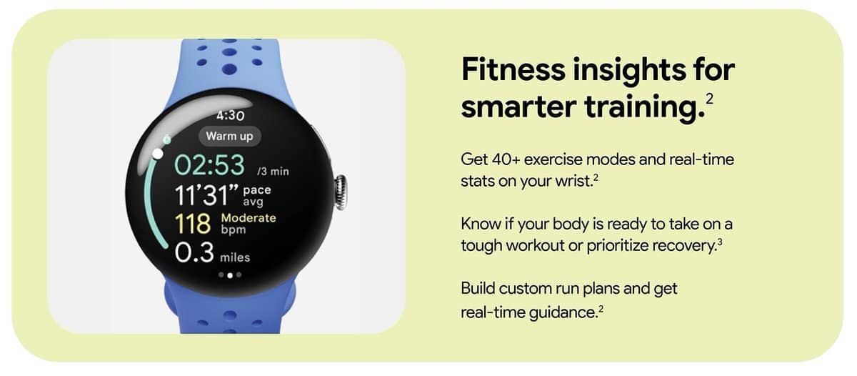 Pixel Watch 4 підтримуватиме понад 40 видів тренувань і відображатиме дані в реальному часі, включаючи рекомендації щодо необхідності відпочинку чи готовності організму до наступного навантаження. Вимірювання включатимуть ЕКГ, рівень кисню в крові (SpO₂), частоту дихання та варіабельність серцевого ритму (HRV).
