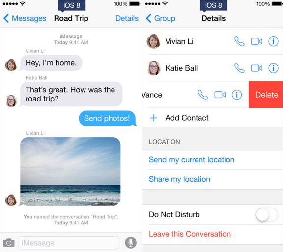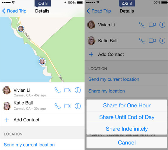 6. Обновлен чат iMessage: мессенджер позволяет проще управлять групповыми чатами и передавать контактам либо текущее местоположение, либо «делиться» географическими координатами на протяжении определенного периода времени: в течение часа, до конца дня или бессрочно.