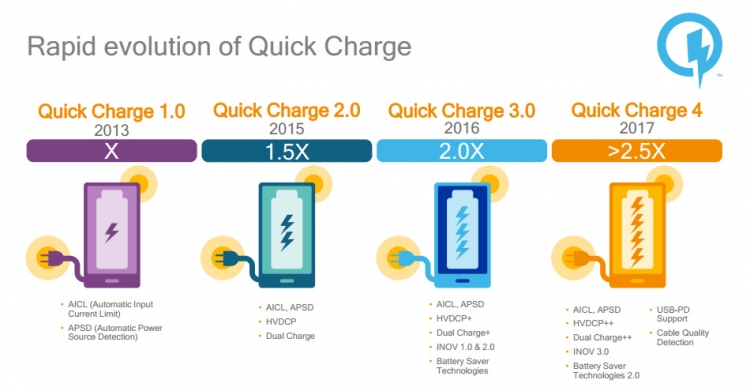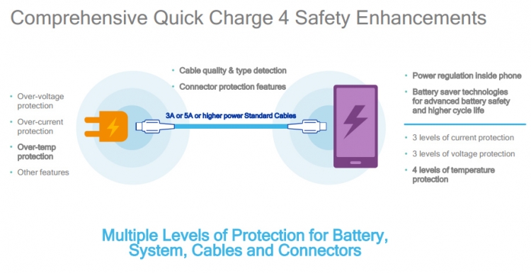 Кроме того Quick Charge 4 включает в себя третье поколение алгоритма управления питанием Inov (Intelligent Negotiation for Optimum Voltage) для оптимального напряжения, который обеспечивает управление температурным режимом в режиме реального времени.