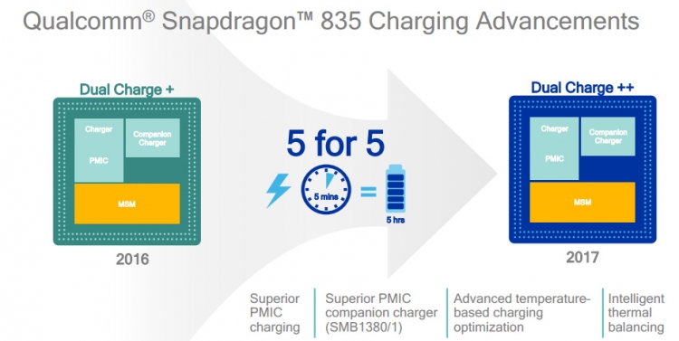 Компания Qualcomm также представила две новые микросхемы управления питанием — SMB1380 и SMB1381, которые имеют низкий импеданс, до 95% максимальную эффективность, а также расширенные функции быстрой зарядки.