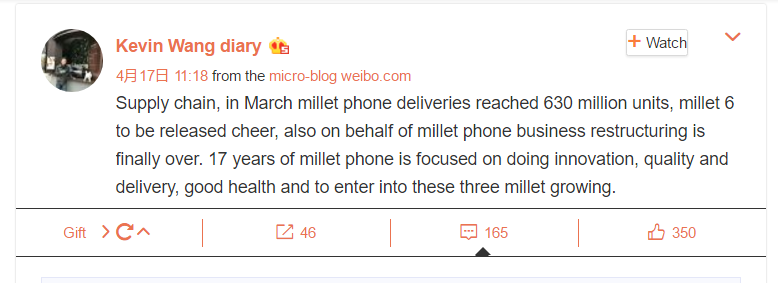 Генеральный директор Xiaomi Лэй Цзюнь (Lei Jun) сообщил в начале этого месяца, что они обсудили реструктуризацию телефонного бизнеса на первом общем собрании после празднования 7-й годовщины компании. Основное внимание в этом году будет уделено трем ключевым аспектам: инновации — работа над прорывами в основных технологиях; качество — продукция, качество которой выше, чем у конкурентов; и доставка — поиск решения для вопросов снабжения.