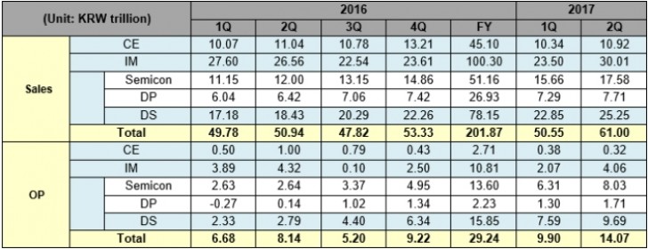 Чип-бизнес Samsung стал лидирующим направлением компании во втором квартале 2017 года с операционной прибылью в размере 7,2 млрд долларов, доход составил около 15,7 млрд долларов. Это число будет расти в период с июля по сентябрь из-за постоянного спроса на чипсеты DRAM и NAND.