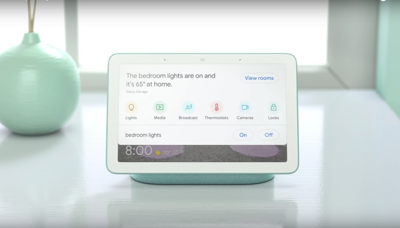 Home Hub — это в основном интеллектуальный динамик с подключенным к нему 7-дюймовым сенсорным дисплеем. Экран позволяет больше взаимодействовать с Google Assistant, и, конечно же, показывать результаты, а не просто рассказывать о них своим голосом.