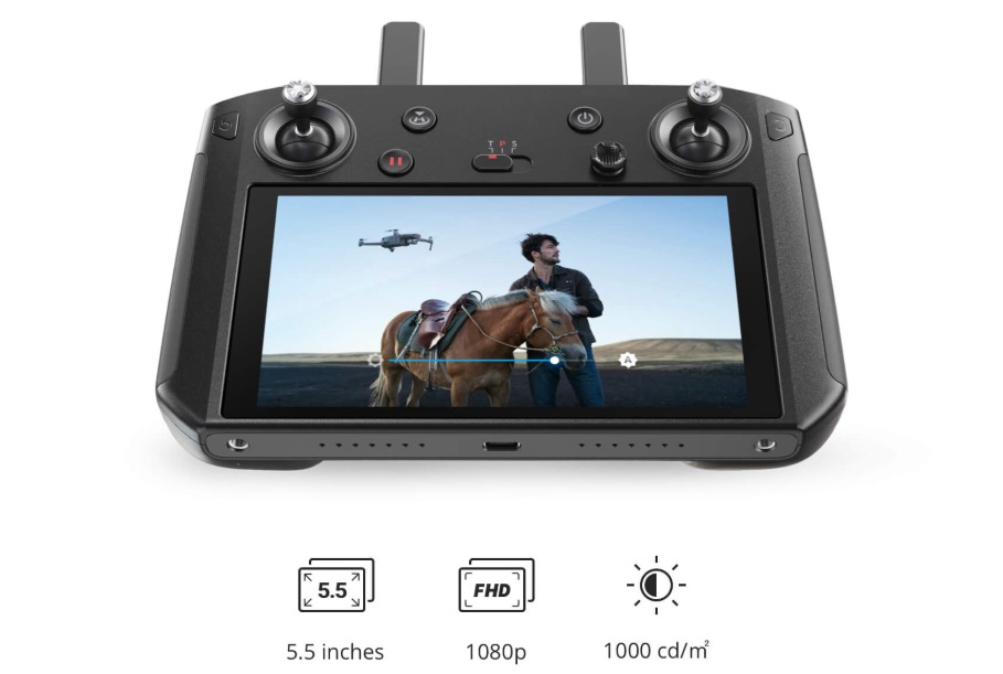 DJI Smart Controller оснащен 5,5-дюймовым ультра-ярким FullHD дисплеем. Компания утверждает, что его яркость составляет 1000 кд/м², что примерно вдвое больше, чем у среднего смартфона/планшета.