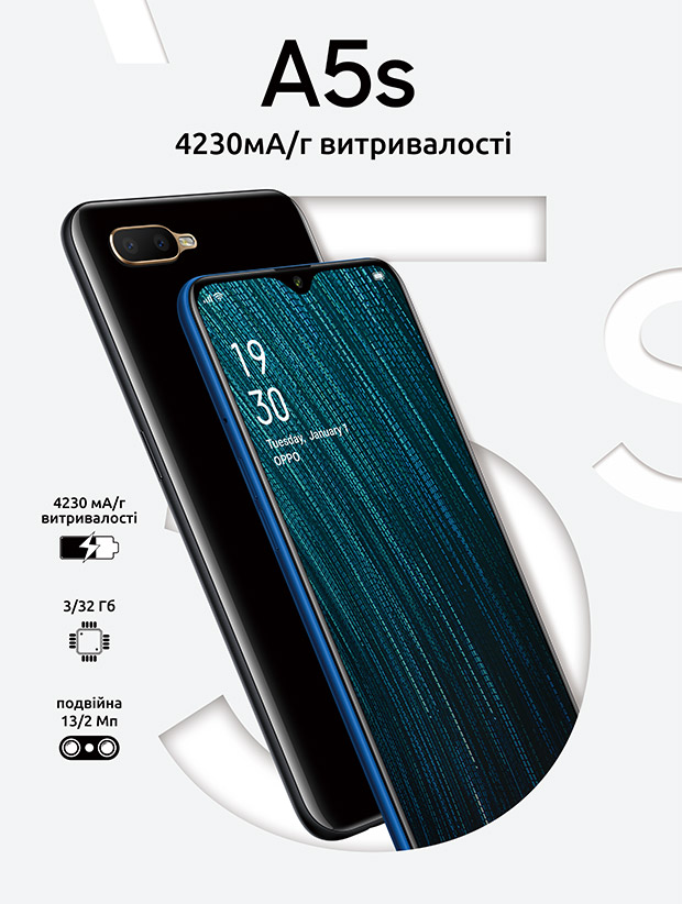 Одним из главных преимуществ OPPO A5s является его высокая автономность. Аккумулятор мощностью 4230 мАч в сочетании с оптимизацией программного обеспечения на основе AI позволяют смартфону работать в течение двух дней активного использования.