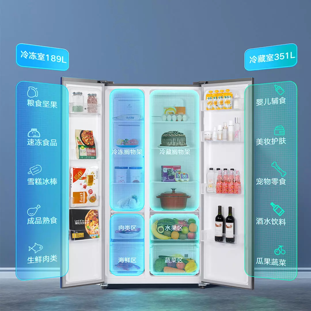 Согласно официальной информации, новый холодильник Mijia оснащен встроенными двухрядными выдвижными ящиками, в которых можно отдельно хранить широкий спектр продуктов, таких как мясо, фрукты и овощи, тем самым предотвращая распространение запахов.