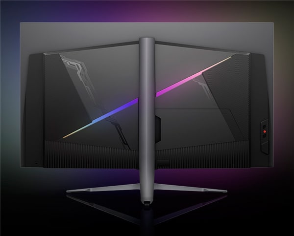 Подставка монитора имеет поворотную конструкцию, а задняя крышка получила RGB полосу, которая обеспечивает световые эффекты во время игры. Среди других функций — два встроенных высококачественных динамика с поддержкой функции Dolby Atmos.