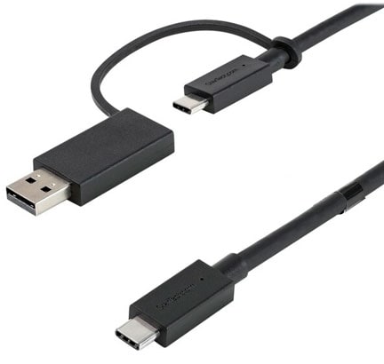 Устройство можно подключить как через разъём USB-A, так и через USB-C благодаря единому кабелю, который входит в комплект поставки.