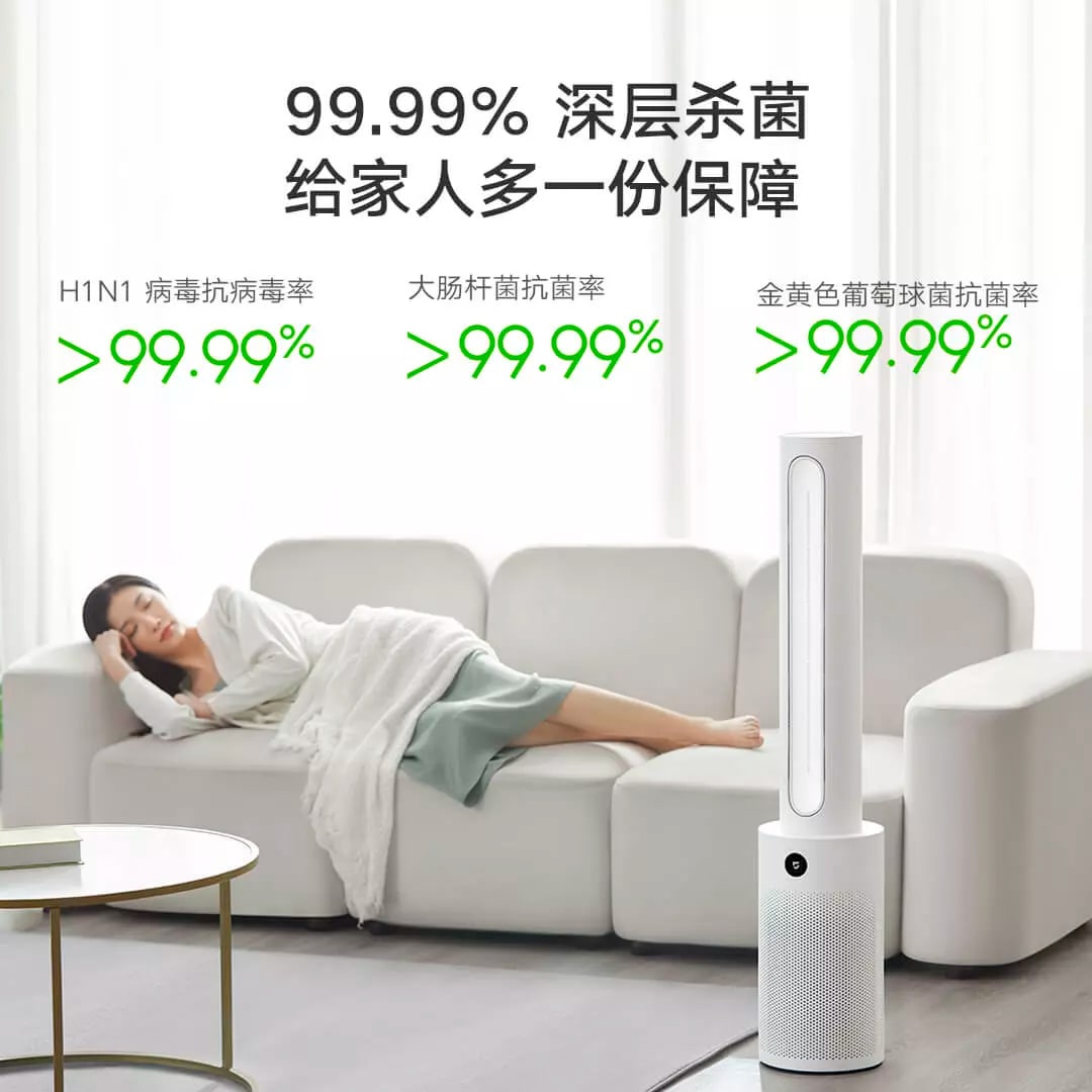 Mijia Smart Bladeless Purification Fan использует конструкцию цикла очистки «два в одном» с возможностью фильтрации частиц размером 80-90 нанометров с эффективностью до 99,96%. Антибактериальное и противовирусное покрытие в фильтрующем элементе может ингибировать и инактивировать бактерии и вирусы в течение длительного времени, уменьшая вероятность бактериального загрязнения в помещении.