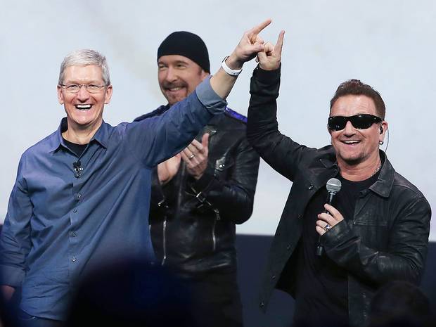 В презентации iPhone 6 и iPhone 6 Plus приняла участие популярная ирландская рок-группа U2, после чего Тим Кук объявил, что каждый пользователь iTunes получит подарок — новый альбом группы «Songs of Innocence» совершенно бесплатно. По некоторым данным, широкий жест Apple обошелся американской компании не менее, чем в $100 млн.