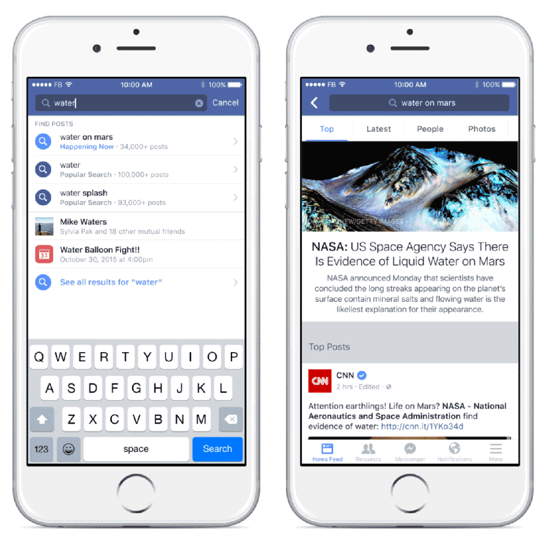 Существенно улучшился функционал поисковых подсказок — они стали актуальными и персонализированными. В соцсети обещают связать со временем подсказки с основными событиями, происходящими в Facebook в текущий момент времени.