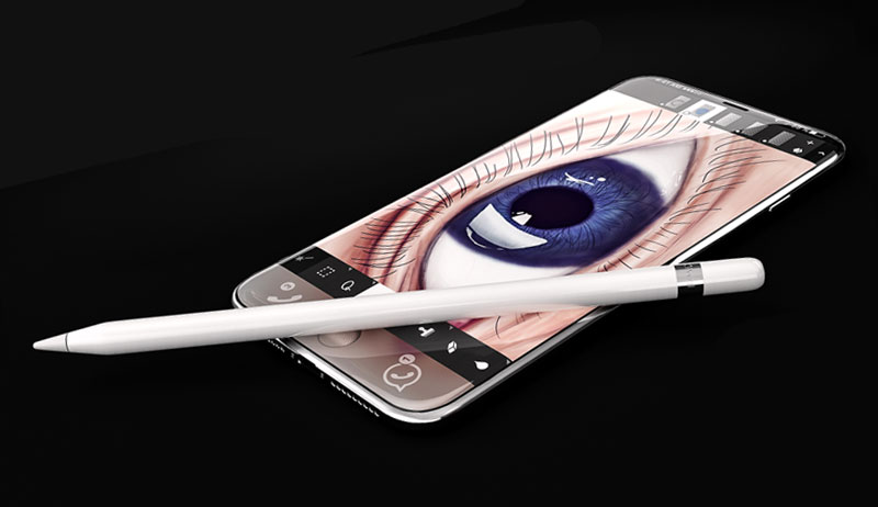 Основная 16-Мп камера состоит из двух модулей, на нижней грани можно заметить отверстия для динамиков и порт USB-C. Дизайнеры предположили, что iPhone 8 может поддерживать работу с Apple Pencil и поддерживает быструю зарядку.