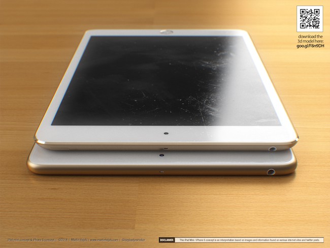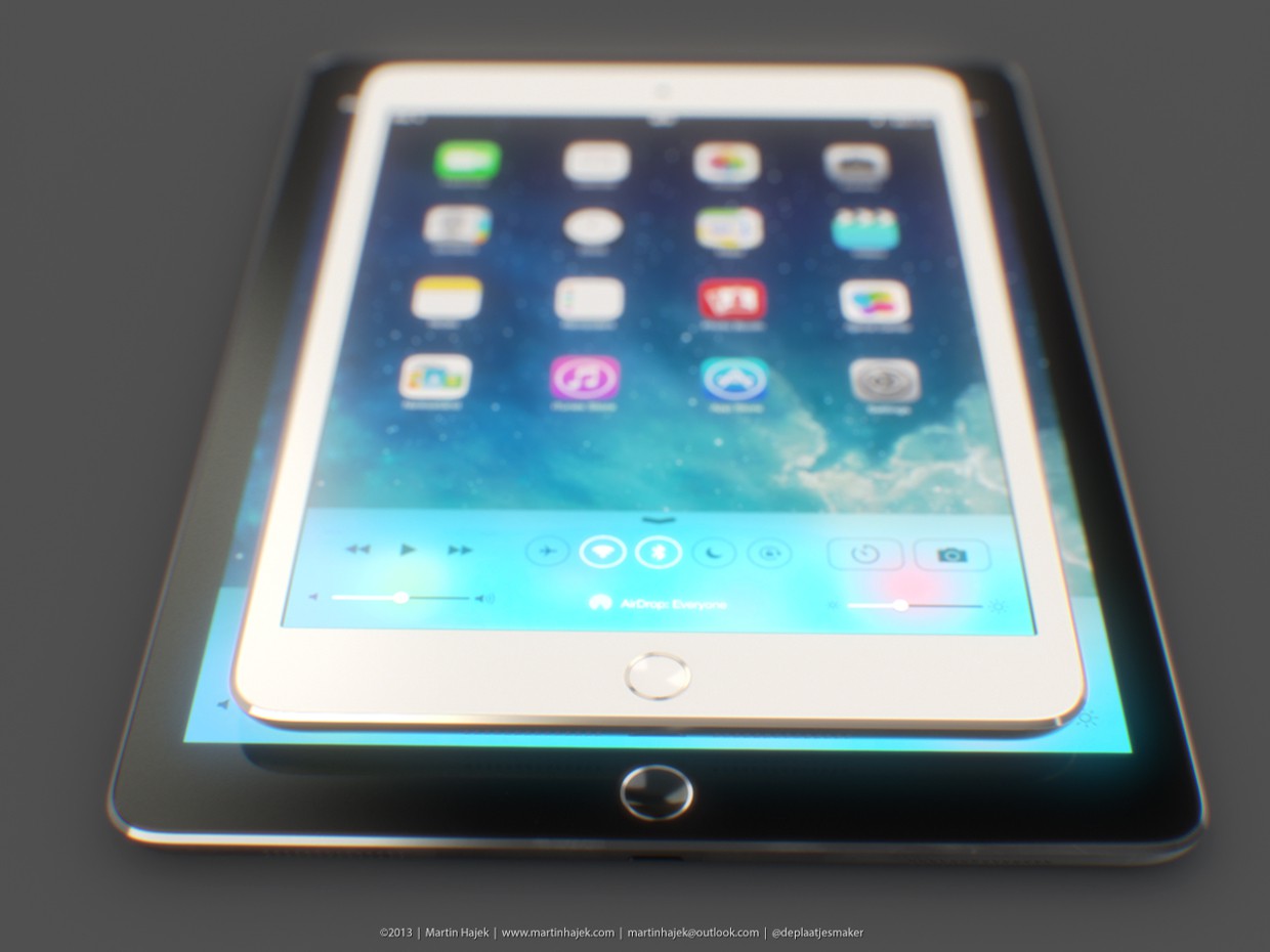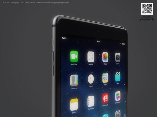 Еще один концепт от Мартина Хайека. Дизайнер полагает, что Apple продолжит создавать «обтекаемые» устройства — в его концепте новый iPad mini получил более тонкий корпус и кнопку Touch ID.