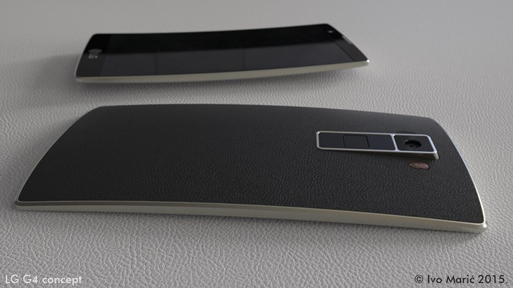 По задумке художника, корпус LG G4 будет изогнутой формы, его рамка выполнена из металла, а задняя крышка из текстурированной кожи. В нижней части устройства расположились аудио разъем и разъем для питания, а также отверстия для динамика.