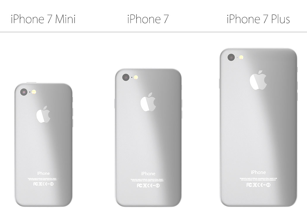 Дизайнер представил сразу три версии смартфона: iPhone 7 будет оснащен 4.7-дюймовым экраном, iPhone 7 Plus — 5.5 дюймовым, iPhone 7 mini — 4 дюймовым.