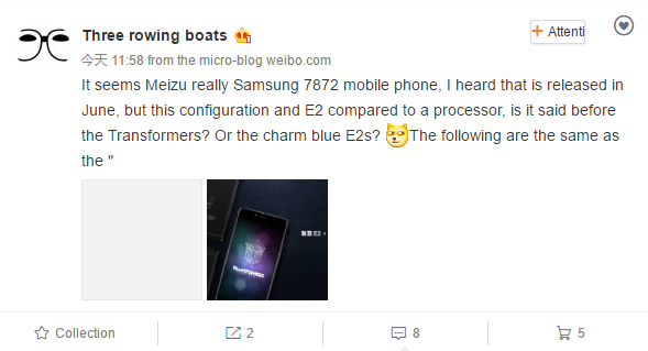 Помимо чипа Exynos 7872, новый смартфон Meizu также получит 5-дюймовым FullHD дисплей (1920х1080 пикселей), зарядку mCharge и уникальную 4-диодную вспышку, как в Meizu E2. Именно поэтому есть предположение, что телефон скорее всего будет называться Meizu E2S.