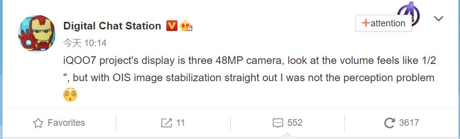 Digital Chat Station также упоминает, что iQOO 7 получит тройную камеру с 48-Мп 1/1,2-дюймовым основным сенсором и поддержкой OIS.