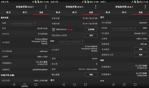 В дополнение к шпионским изображениям прилагаются данные тестирования Huawei Ascend P8 в AnTuTu, где будущий флагман набрал завидные 47 426 баллов.