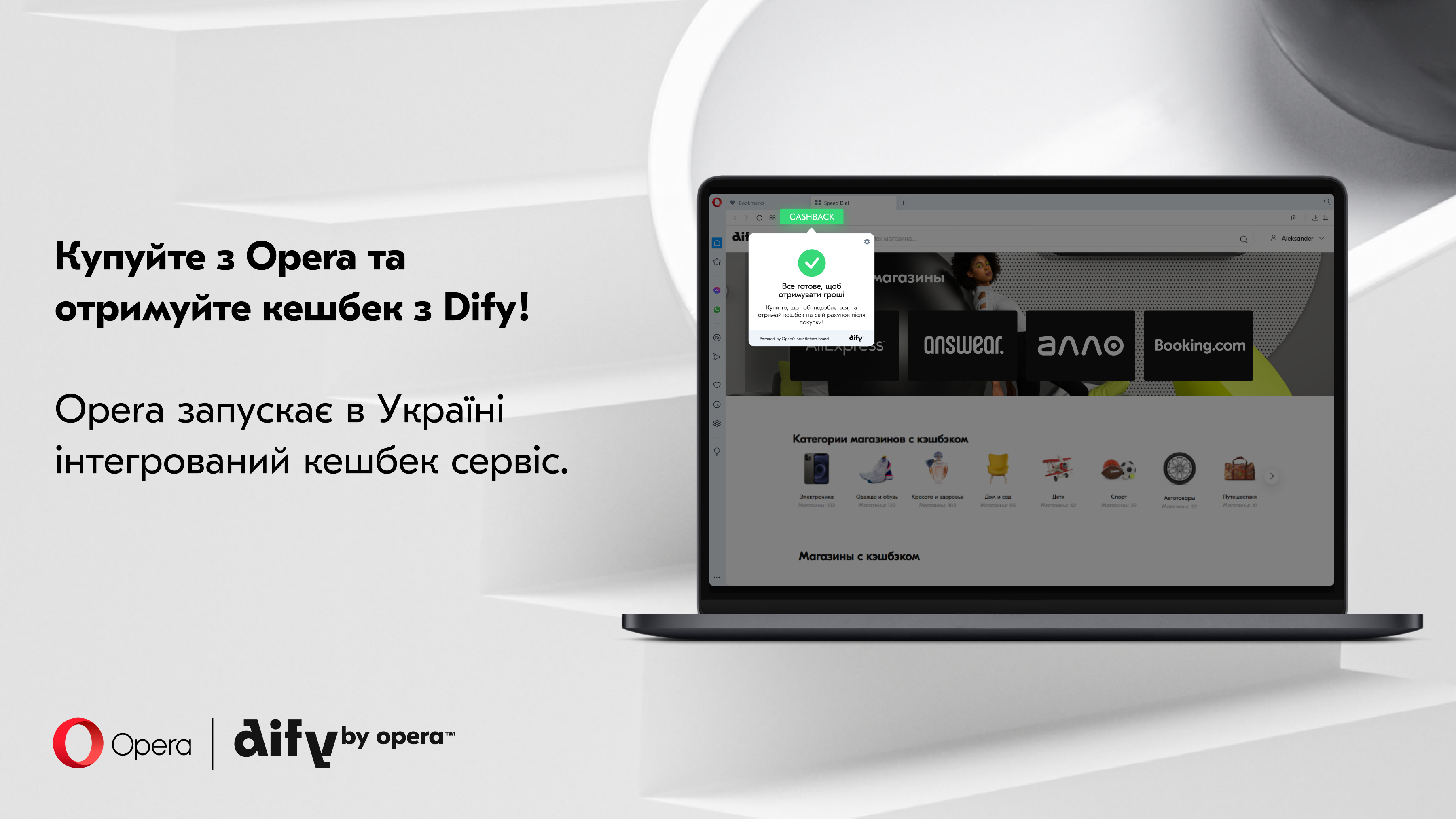Компания Opera объявила о запуске нового, интегрированного в браузер кешбэк-сервиса Dify в Украине.