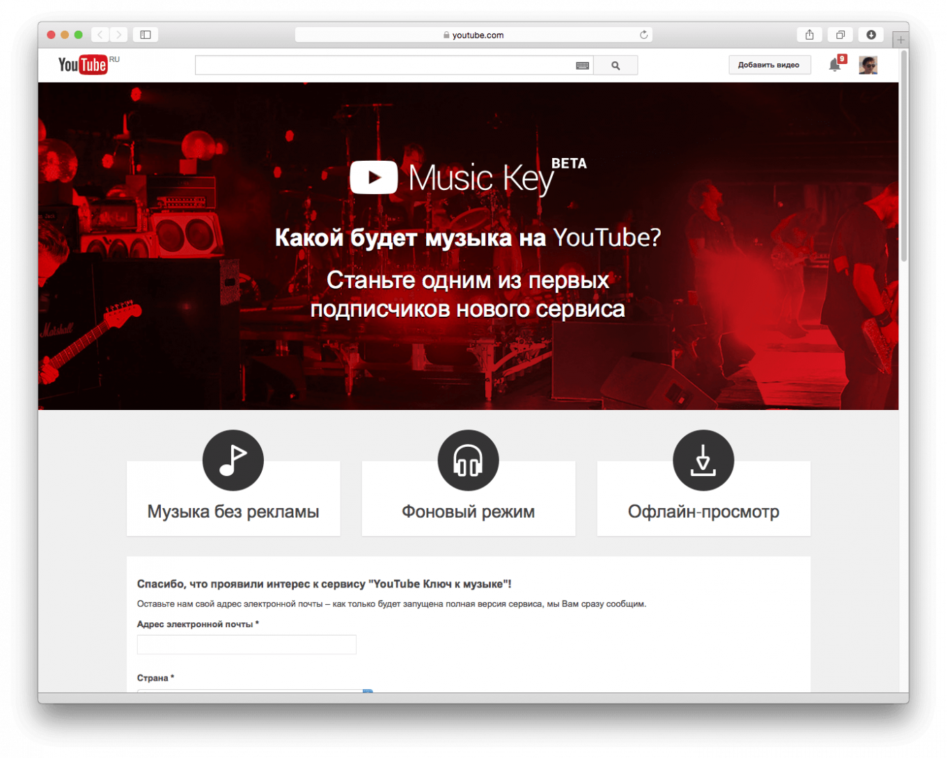 Пользователи YouTube долгое время использовали видеосервис для поиска и прослушивания музыки. Компания решила использовать наработанную базу и организовать собственную музыкальную библиотеку, которая будет доступна пользователям по подписке. Включает в себя персональные подборки, которые можно также просматривать и через главную страницу самого YouTube.