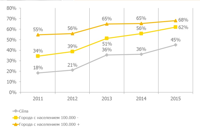 Интересно, что проникновение в селах растет сейчас быстрее: