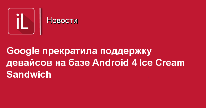 Google больше не выпускает обновлений для операционной системы Android 4 Ice Cream Sandwich. В компании полагают, что данная версия ОС более не такая популярная, так как устройствами на ее базе пользуются менее 1% владельцев мобильных устройств. Приложения из Google Play также больше не получат обновлений.