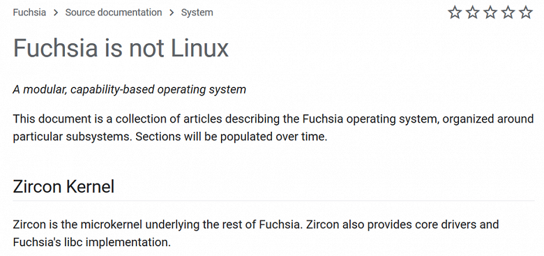 Операционная система Fuchsia имеет открытый исходный код. Она предназначена для работы с самыми разнообразными девайсами. В основе лежит собственное ядро Zircon, которое требует меньше кода, чем ядро Linux в Android и Chrome OS.