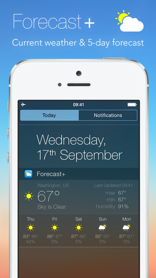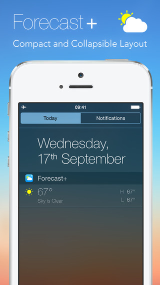 Метеоинформер Weather Widget содержит четыре погодных виджета с детальным прогнозом на 12 часов. Чтобы узнать температуру окружающего воздуха, облачность и влажность, достаточно бросить взгляд на Центр уведомлений. Приложение стоит 66 руб.