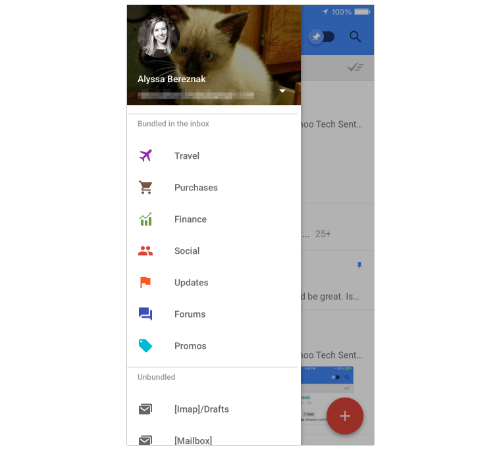 Начать с того, что приложение анализирует язык входящих писем и автоматически сортирует их по нескольким основным разделам: путешествия, покупки, финансы, социальное, оповещения, форумы и акции. Эти разделы вынесены на навигационную панель в левой части: