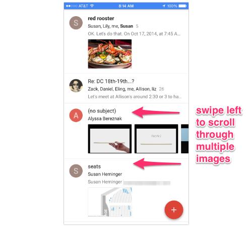 Еще одна полезная функция позволяет просмотреть несколько вложений сразу под строкой темы. Так можно сразу увидеть фотографию с Craigslist или смешных кошек и не вспоминать, кто, что и когда вам прислал. Это большой шаг вперед по сравнению с нынешним приложением Gmail, в котором нет даже традиционного значка скрепки для выделения писем с файлами и изображениями.