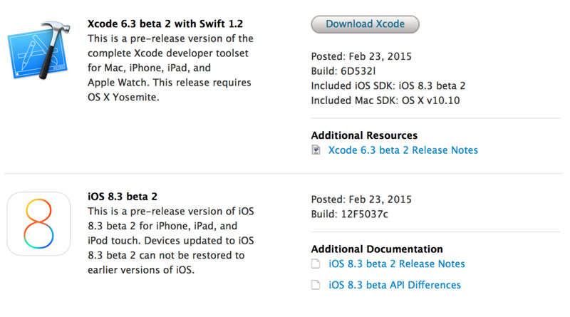 Скачать iOS 8.3 beta 2 могут разработчики, зарегистрированные в iPhone Developer Standard и Enterprise Program. Минимальные требования для iOS SDK 8.3 – компьютер с операционной системой OS X 10.9.3 (Mavericks) или выше.