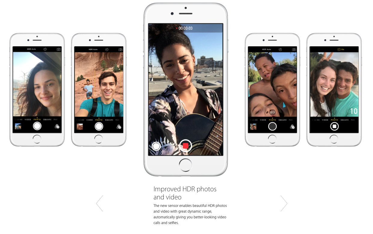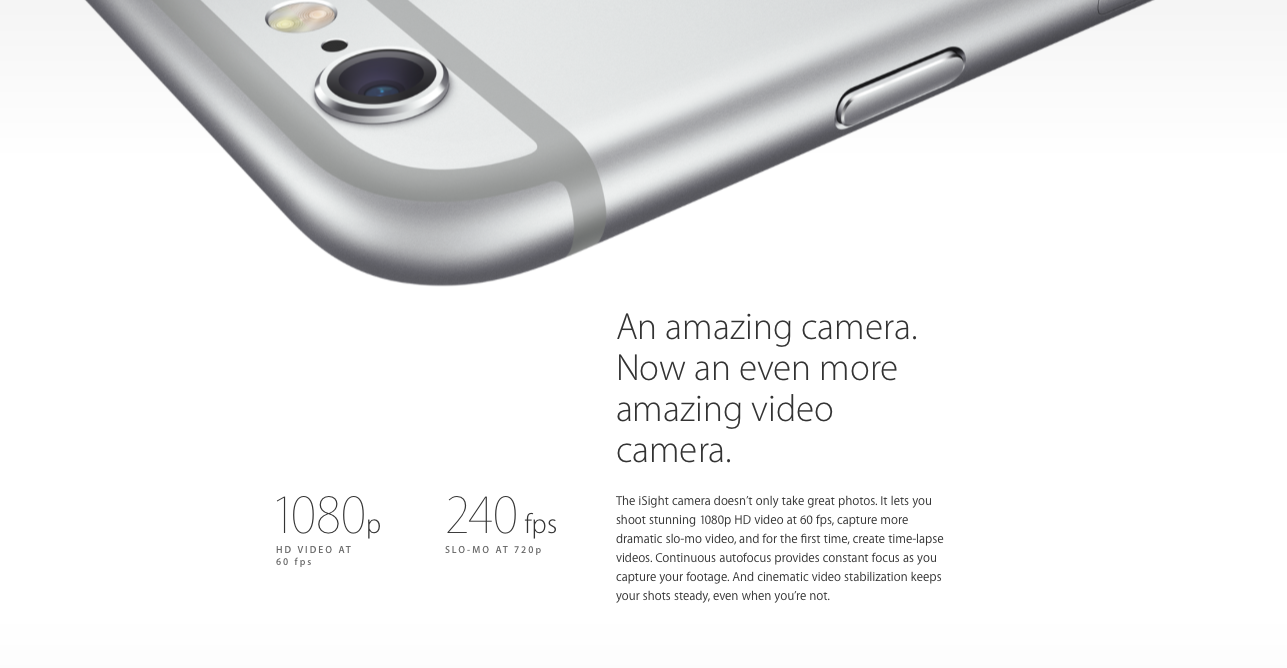 Apple сообщает, что камеру способна снимать панорамы до 43 МП. Режим Slo-mo при съемке видео работает с частотой 120 или 240 fps. Разрешение записи видео сохраняется в размере 1080p, но 60fps повышен до max FullHD (720p @ 60fps).