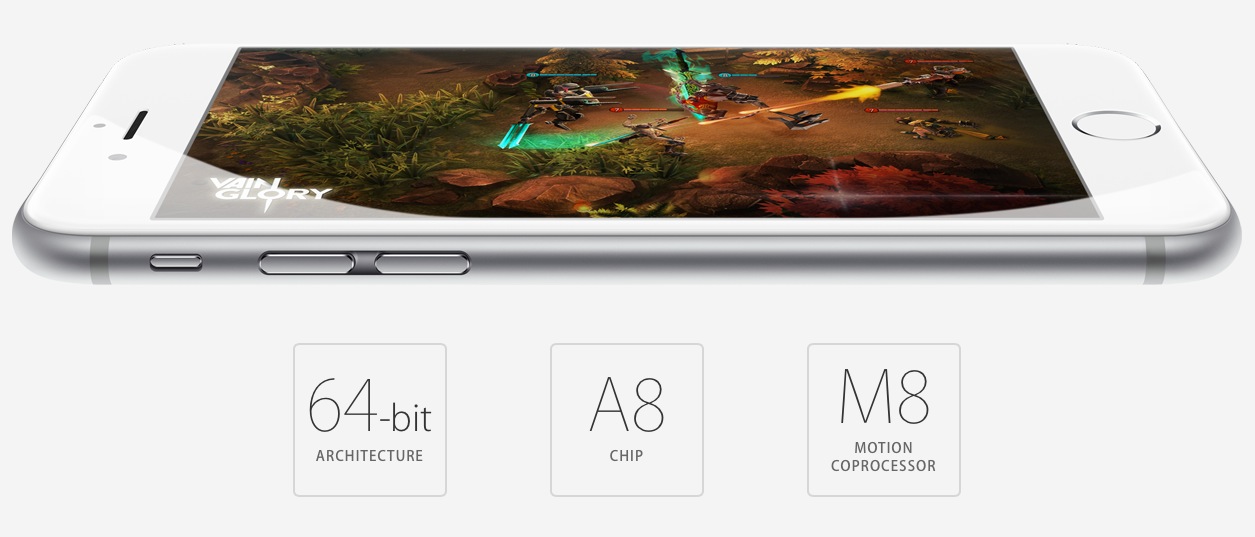 Новый 64-битный чип A8, который используется в Apple iPhone 6 Plus, построен с использованием производственного процесса 20 нм. Благодаря этому он более энергоэффективный и предлагает на 25% больше мощности процессора, нежели у А7, а также на 50% выше графические характеристики.