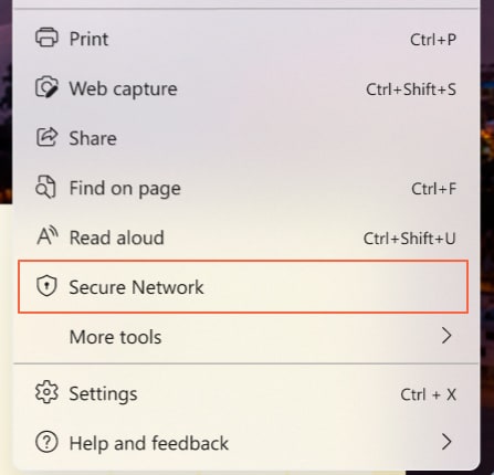 Данная функция все еще находится в стадии разработки и, скорее всего, сначала будет доступна участникам Microsoft Edge Insider. Как только она станет доступна, пользователи смогут активировать VPN, щелкнув раскрывающийся список с тремя точками в правом верхнем углу и перейдя к параметру безопасной сети. Как только соединение будет защищено, в рамке браузера появится значок щита.