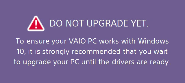 Японский производитель предупреждает о необходимости дождаться момента, когда будут готовы все необходимые драйвера для оборудования Vaio на Windows 10. В компании в настоящее время ведётся тестирование поддерживаемых моделей.
