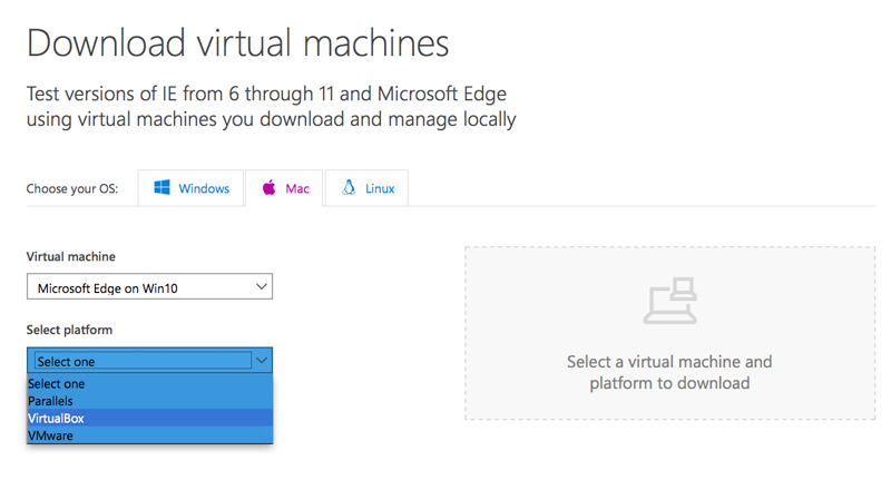 Виртуальные машины также доступны для загрузки пользователям Windows предыдущих версий, для использования с Oracle VirtualBox, VMware Workstation и Microsoft HyperV.
