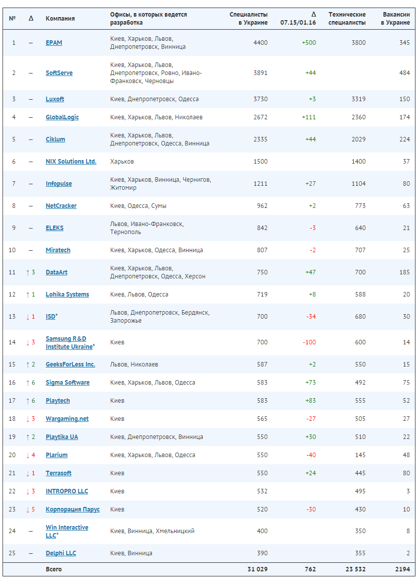Полная версия ТОП-25 и данные прошлых рейтингов доступны по этой ссылке: jobs.dou.ua/top25.