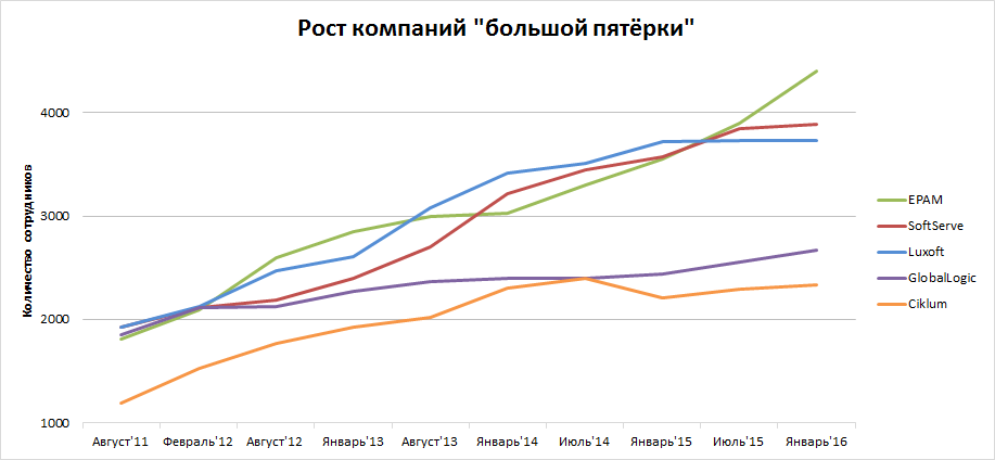 Звание крупнейшего ИТ-работодателя Украины снова получил EPAM. За последние полгода эта компания росла активнее других представителей «большой пятерки», а также стала первой, кто переступил порог в 4000 человек: