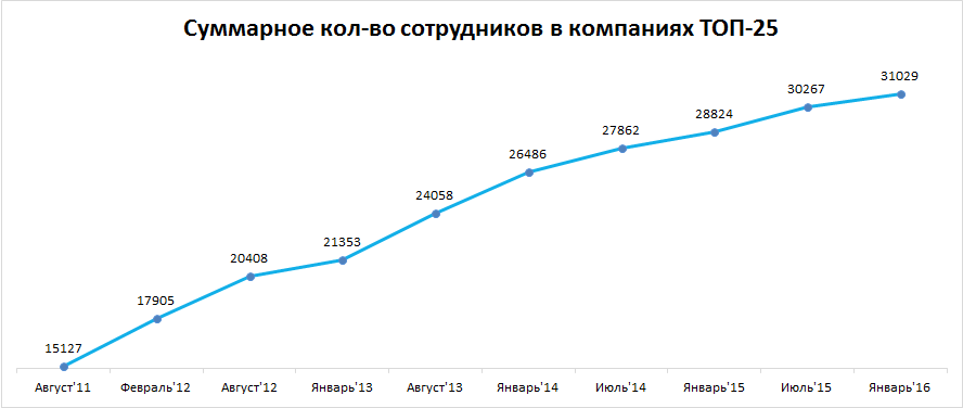 Общий рейтинг компаний по количеству сотрудников выглядит так:
