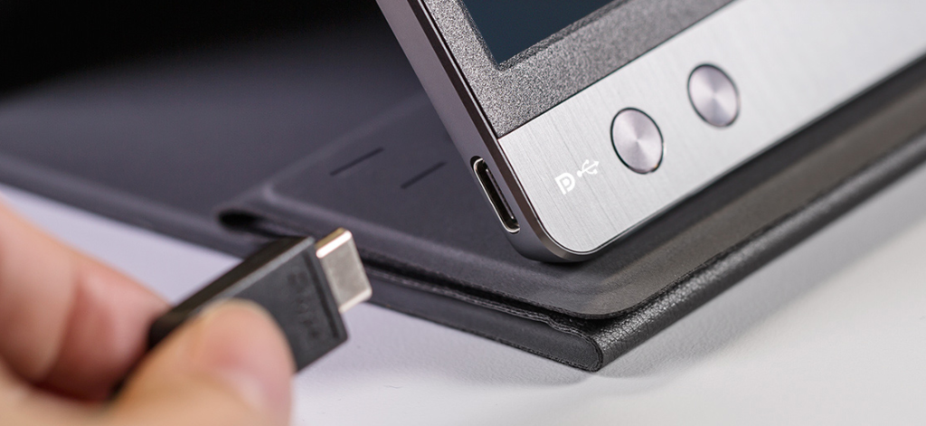 Устройство оснащено специальной ручкой ZenScreen Pen, которая помогает держать экран в альбомной или портретной ориентации. Для этого она вставляется в специальное отверстие в корпусе дисплея, находящееся справа внизу. Также для этого предусмотрена обложка Smart Case. Сам экран не поддерживает стилусный вод, поэтому использовать его модно только в качестве подставки.