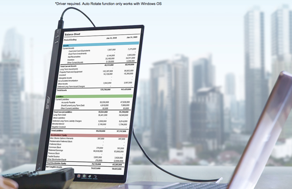 ASUS ZenScreen имеет 15,6-дюймовый IPS дисплей с разрешением 1080p (1920х1080 пикселей), плотностью пикселей 141 ppi и с тонкими 6,5-мм рамками. Максимальная яркость дисплея составляет 220 кд/м², максимальная статическая контрастность — 800:1. Что касается спецификаций, экран поставляется с восемью предустановленными видео режимами, сертифицированной технологией устранения мерцания Flicker-free и четырьмя уровнями фильтра синего света. Для входа есть USB Type-C порт и несколько кнопок для питания и меню.