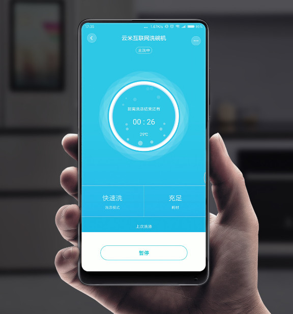 «Умная» посудомоечная машина Yunmi Smart Dishwasher получила промывочный насос производства итальянской компании Weike, который позволяет очищать посуду струями воды под давлением 15 кПа. Таким образом устройство способно вымывать любое загрязнение, не повреждая саму посуду.