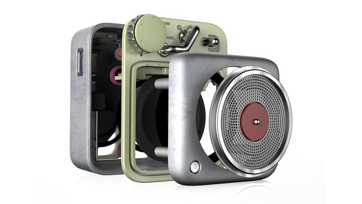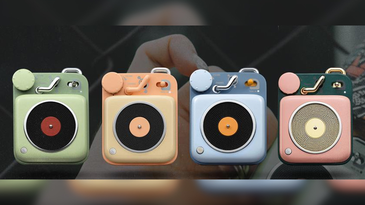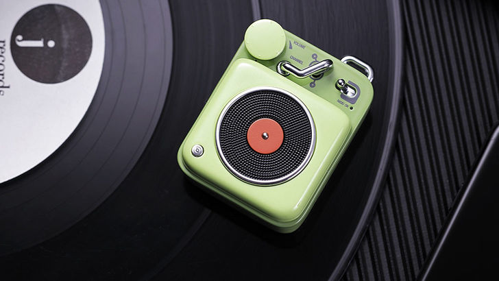 Уникальность новинки заключается в том, что она имеет достаточно необычный внешний вид. Она выглядит, как миниатюрный старый проигрыватель виниловых пластинок.