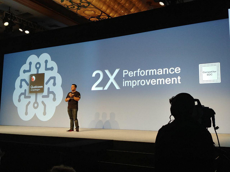 Что касается приложений с искусственным интеллектом, что в Qualcomm заявляют, что новая однокристальная система демонстрирует при работе с ними вдвое большую производительность, нежели это реализовано у конкурентов.