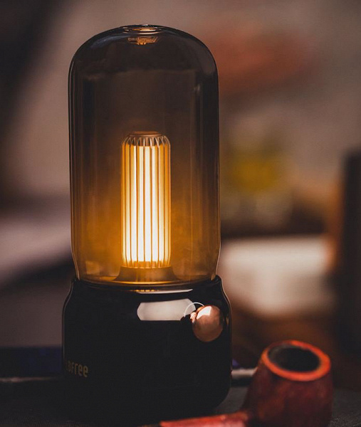 Светильник мощностью 2 Вт поддерживает регулировку яркости в диапазоне от 1% до 100%. Питание тоже обеспечивает аккумулятор. Его емкость равна 2200 мАч. Теплый свет и «дыхание» светильника усиливают атмосферу ретро.