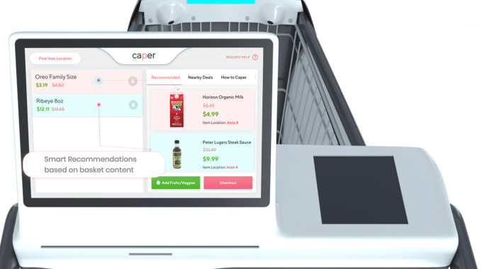 В США разработали смарт-тележку Caper для осуществления покупок в супермаркетах.
